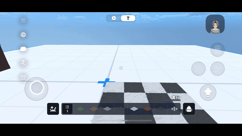In order to make the reticle visible, the avatar's view is slightly shifted to the left when viewed from the third-person perspective in craft mode.