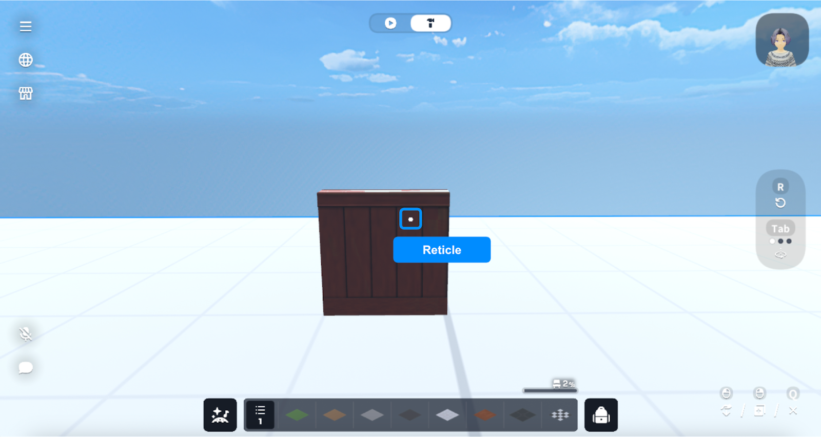 In the mobile and desktop versions, the reticle is always centered and can be moved by moving the avatar's perspective.