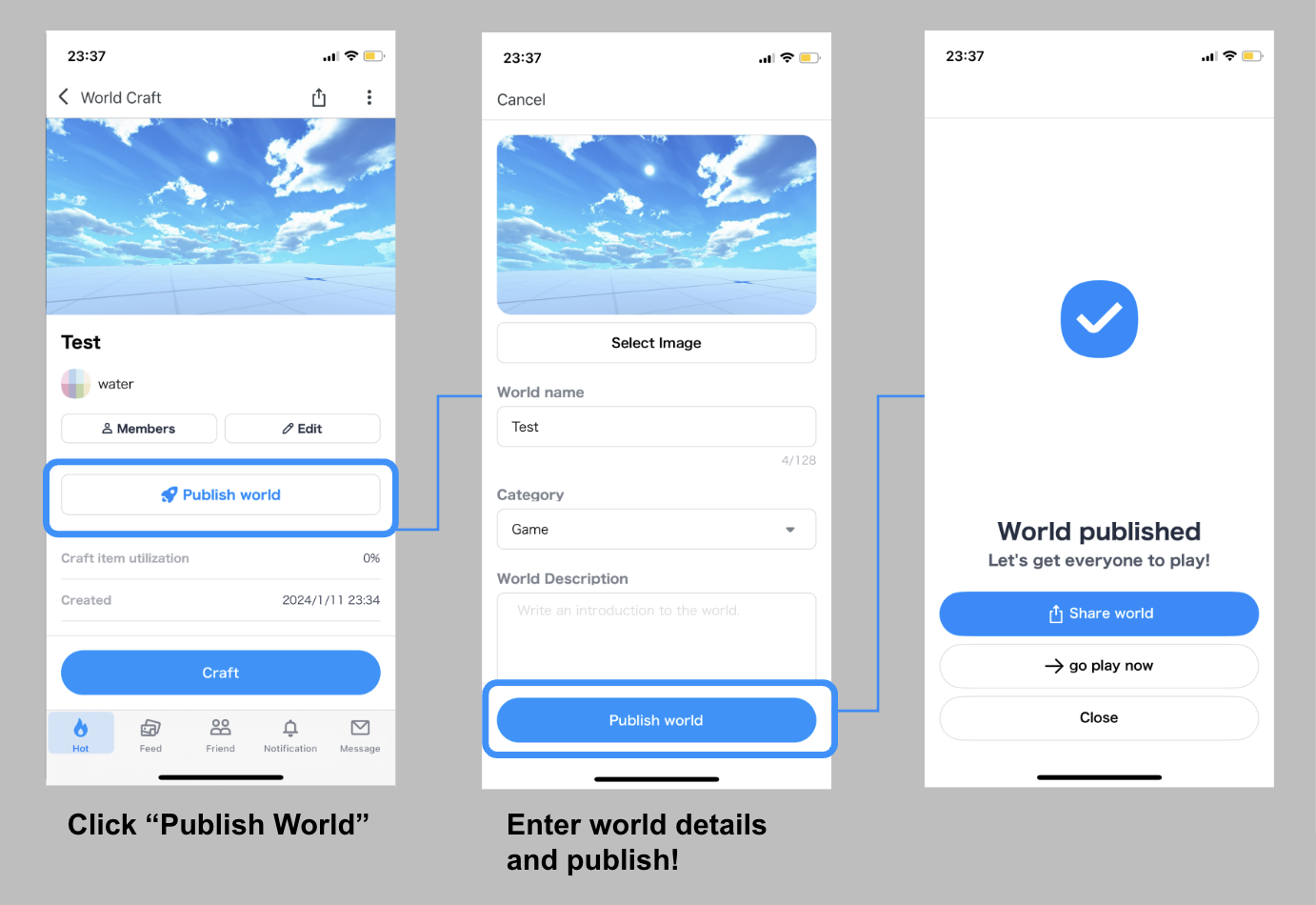 - Select the world you want to publish from World Craft and go to the world details screen.