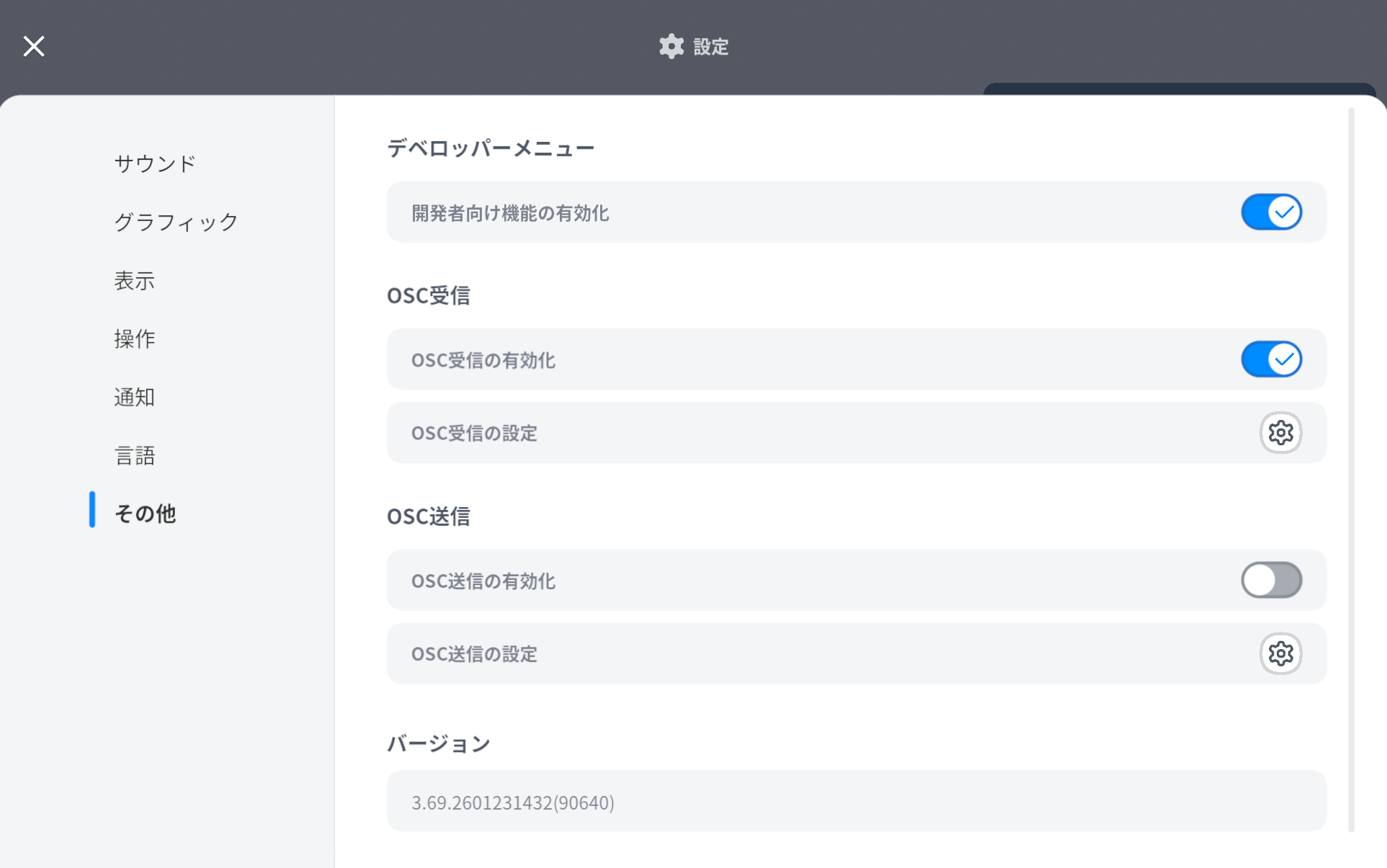 「その他」の項目にデベロッパーメニューを有効化するためのオプション「開発者向け機能の有効化」があるので、このオプションを有効化します。