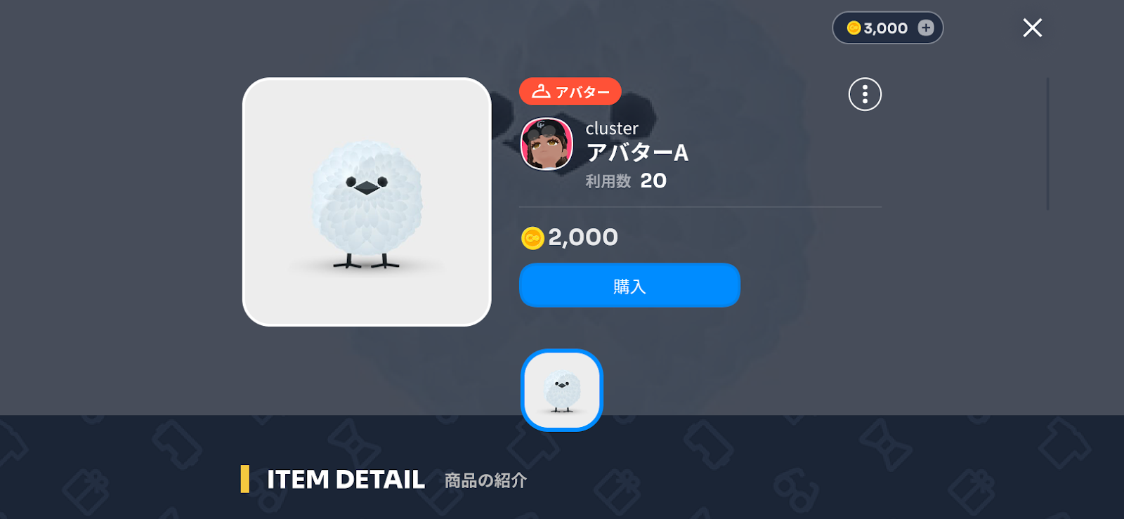 clusterにはユーザーが自由にモデリングしたキャラクターを自身のアバターとして使用できるカスタムアバター機能があります。