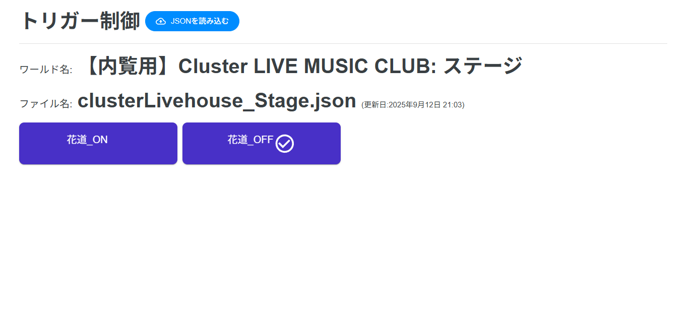 「Webトリガー」を使って、ステージエリアの花道ON/花道OFFが選択できます。デフォルトでは「花道OFF」状態になっています。